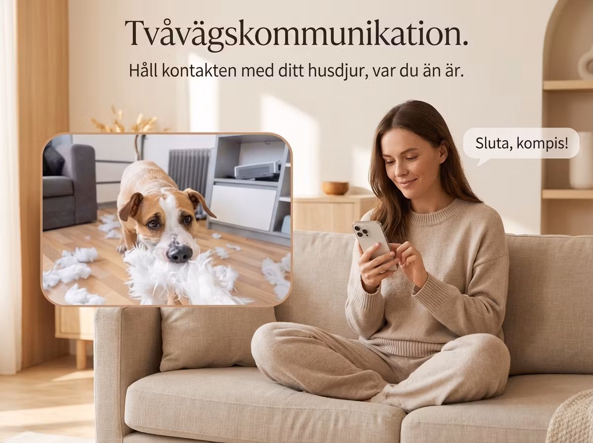 - Tvåvägsljud – prata och lyssna på ditt husdjur i realtid